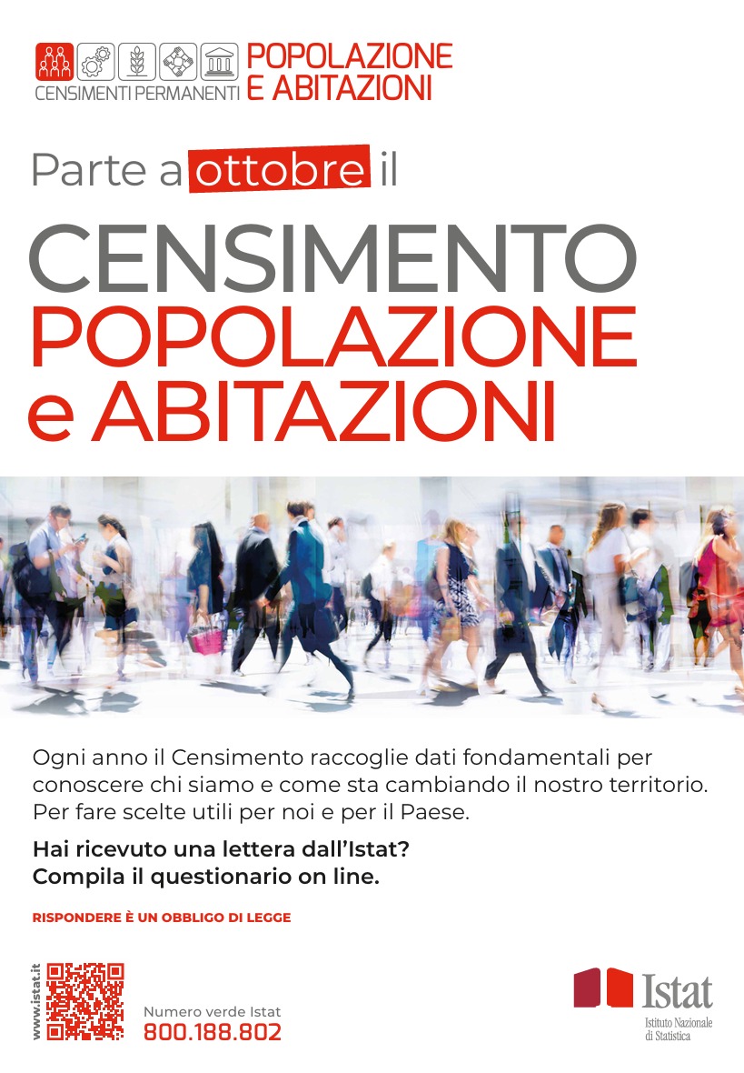 Si informa la gentile cittadinanza che il 7 ottobre 2024 prenderà il via la nuova edizione del Censimento permanente della popolazione e delle abitazioni, che come ogni anno coinvolgerà un campione rappresentativo di famiglie.
